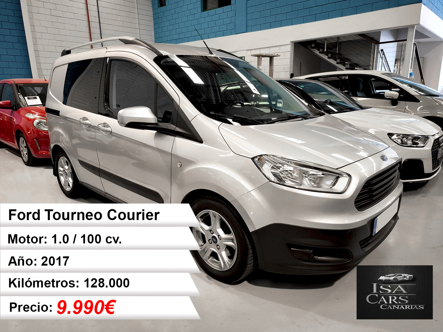 Este Ford Tourneo Courier 1.0 EcoBoost ofrece una combinación ideal de espacio y economía con su eficiente motor de gasolina de tres cilindros que desarrolla 100 CV. Su diseño compacto exterior contrasta con un amplio espacio interior, destacando por su capacidad de maletero de 708 litros que puede ampliarse hasta 1.656 litros con los asientos abatidos.