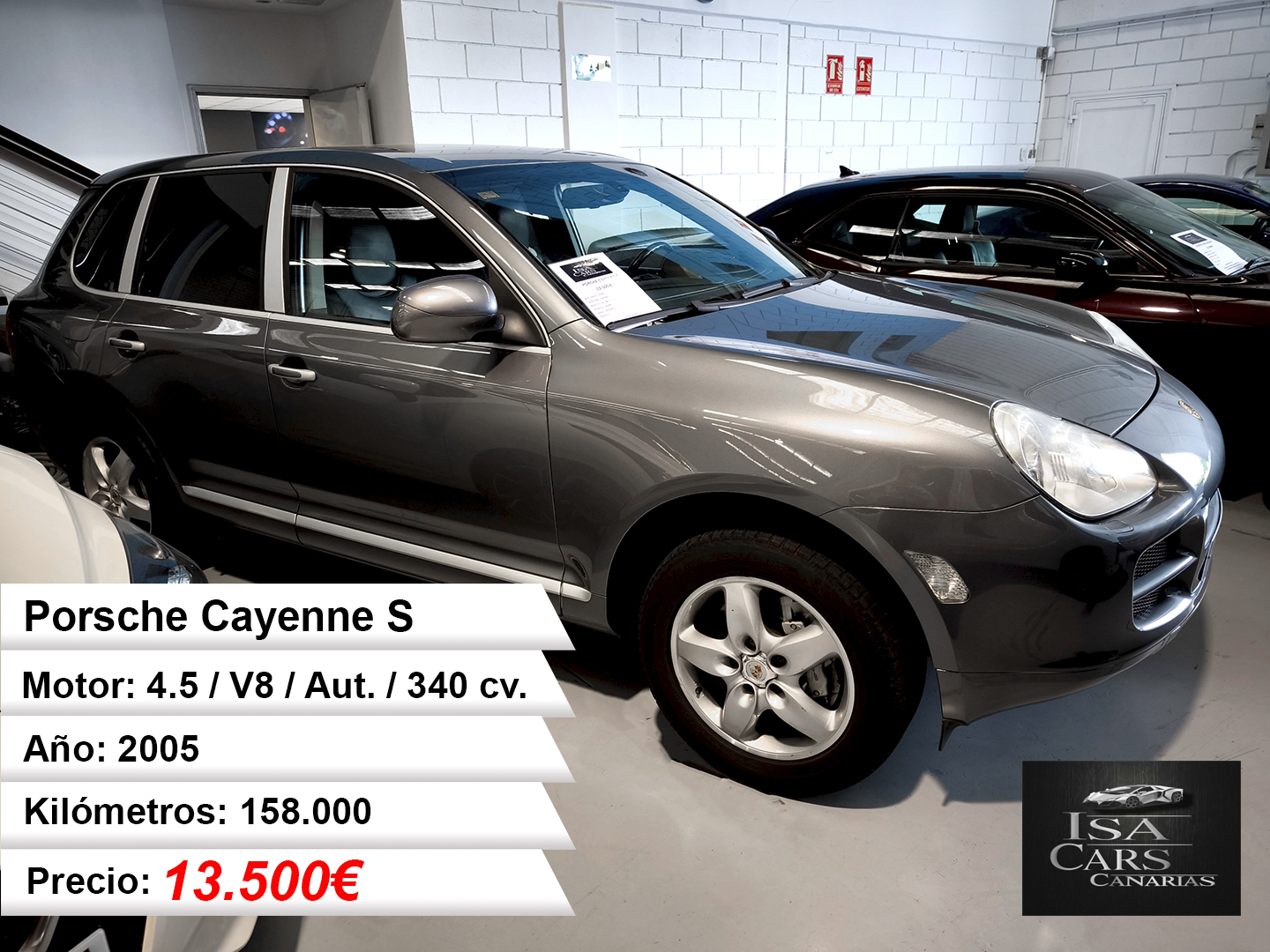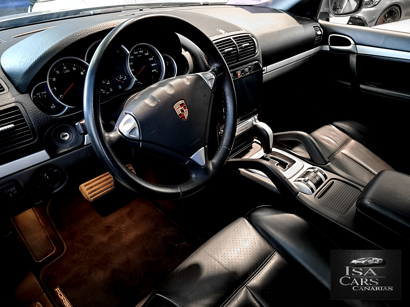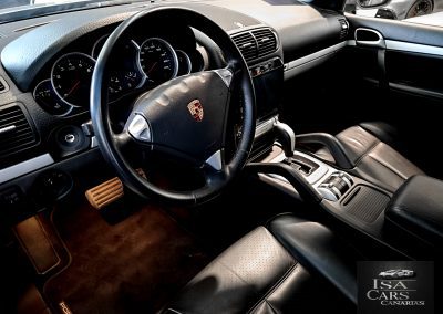 Este Porsche Cayenne S destaca por su potente motor V8 de 4.5 litros con 340 CV, ofreciendo un rendimiento excepcional con aceleración de 0-100 km/h en 7.2 segundos y una velocidad máxima de 242 km/h. La tracción integral permanente con control de descenso garantiza un comportamiento seguro en cualquier terreno.